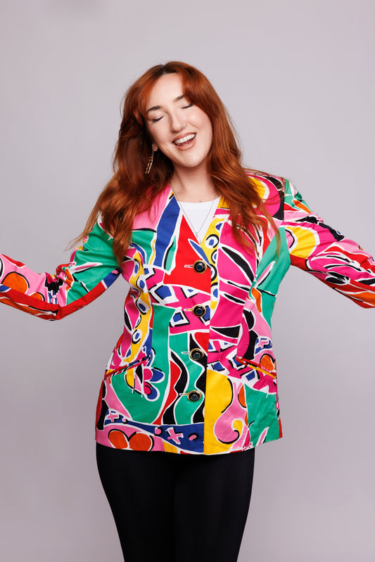 80's Colourful Cotton Blazer M