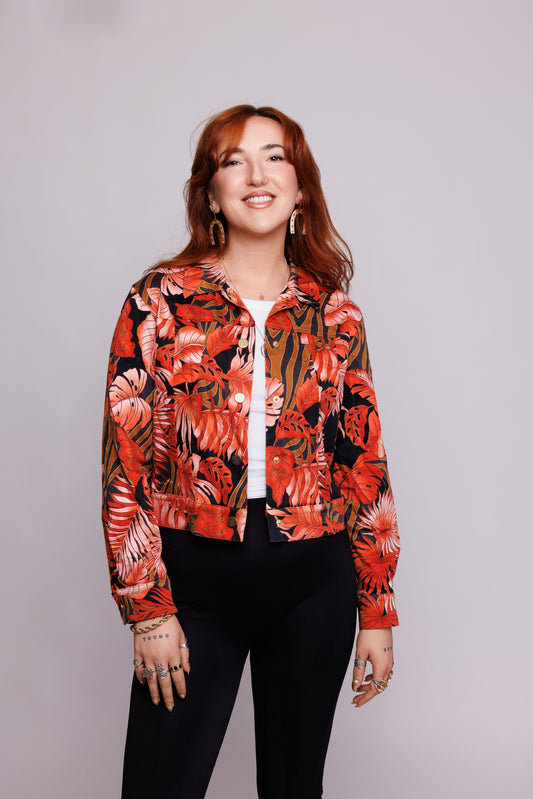 80's Hawaiian Print Denim Jacket M