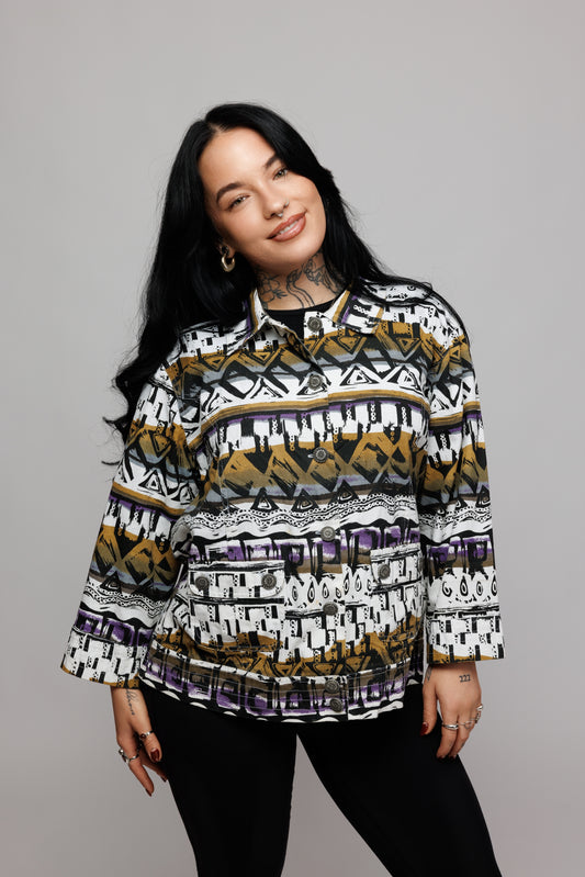 80's Patterened Cropped Jacket M