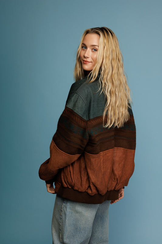 70's Aztec Suede & Forest Green Bomber Jacket M/L