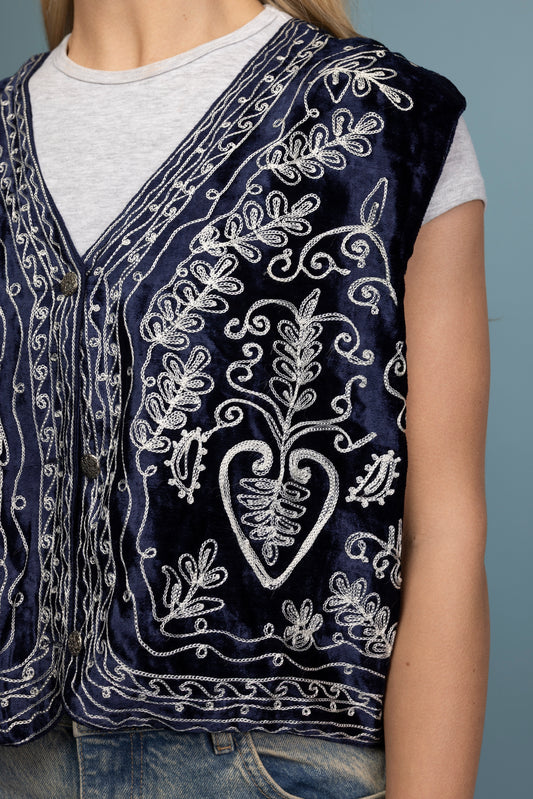 90's Whimsigoth Velvet Embroidered Waistcoat S/M