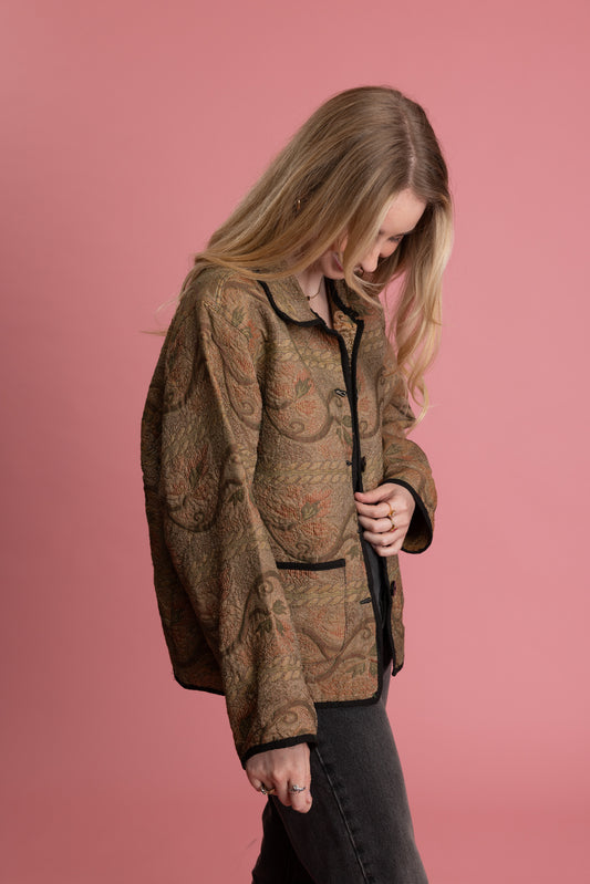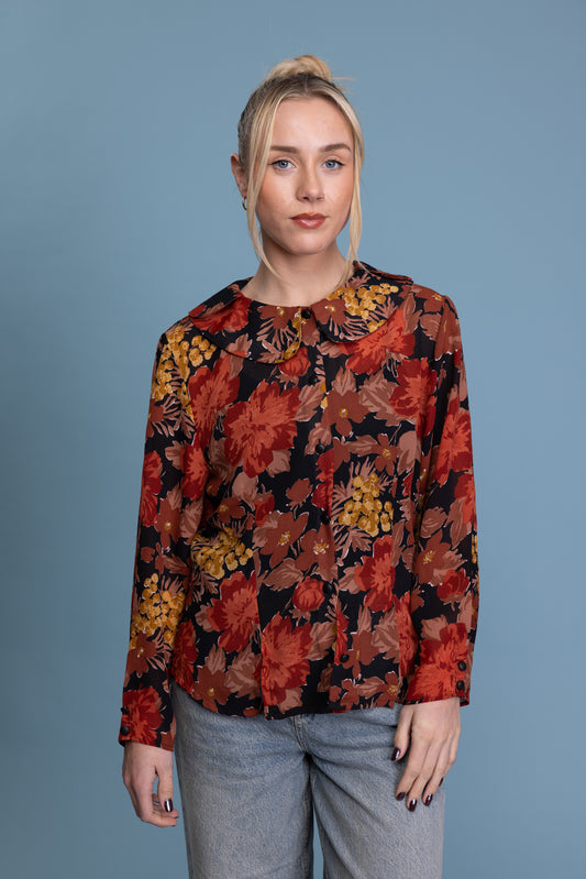 90's Floral Peter Pan Collared Sheer Shirt S/M