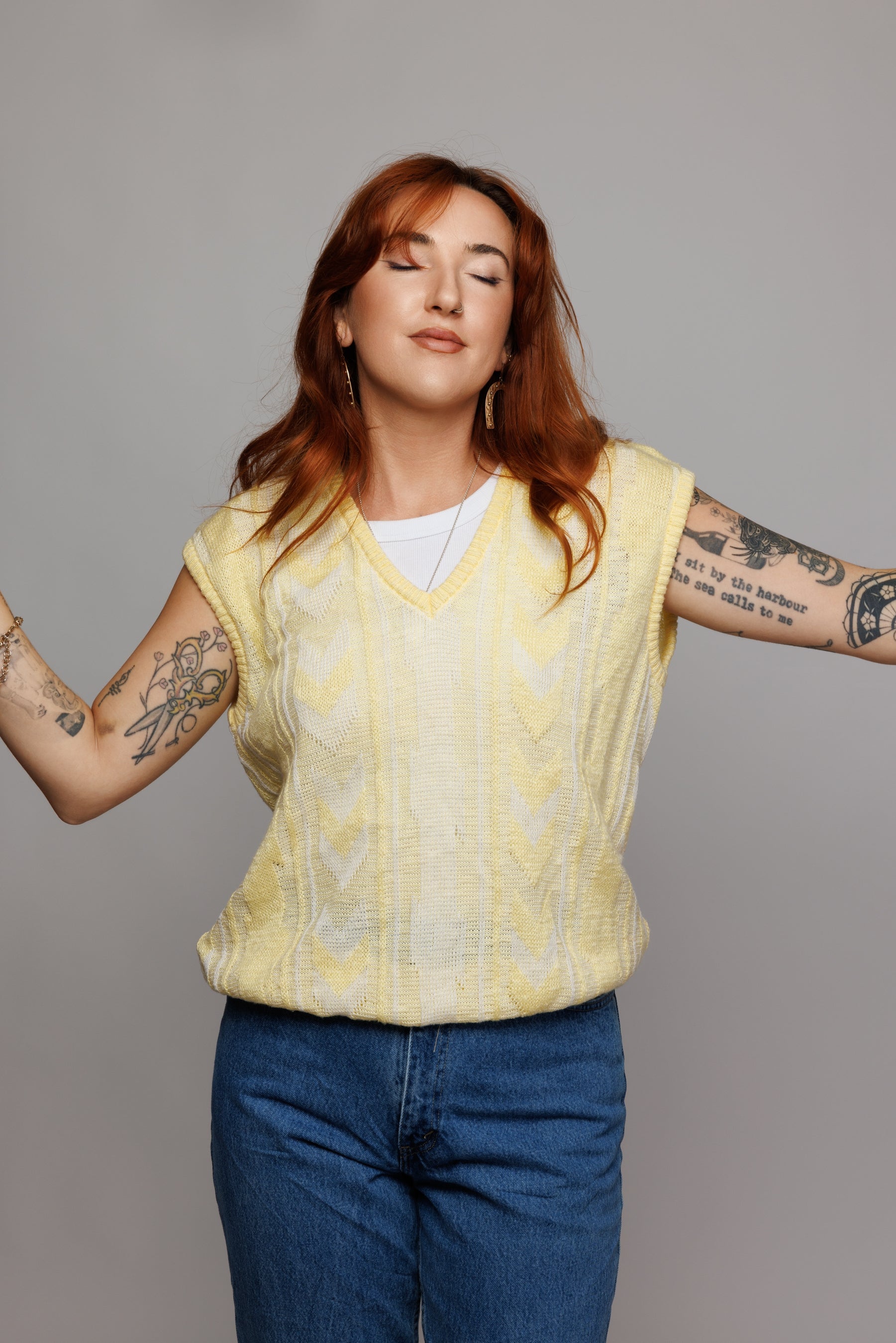 80's Butter Yellow Sweater Vest L