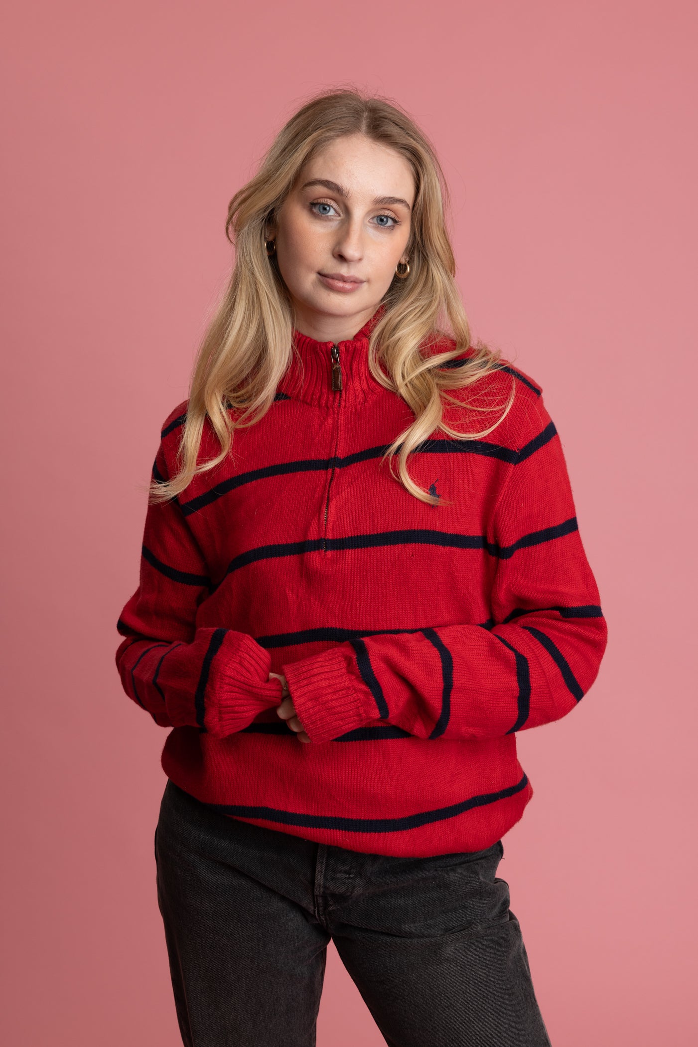 90's Ralph Lauren 1/4 Zip Striped Knit Jumper M/L