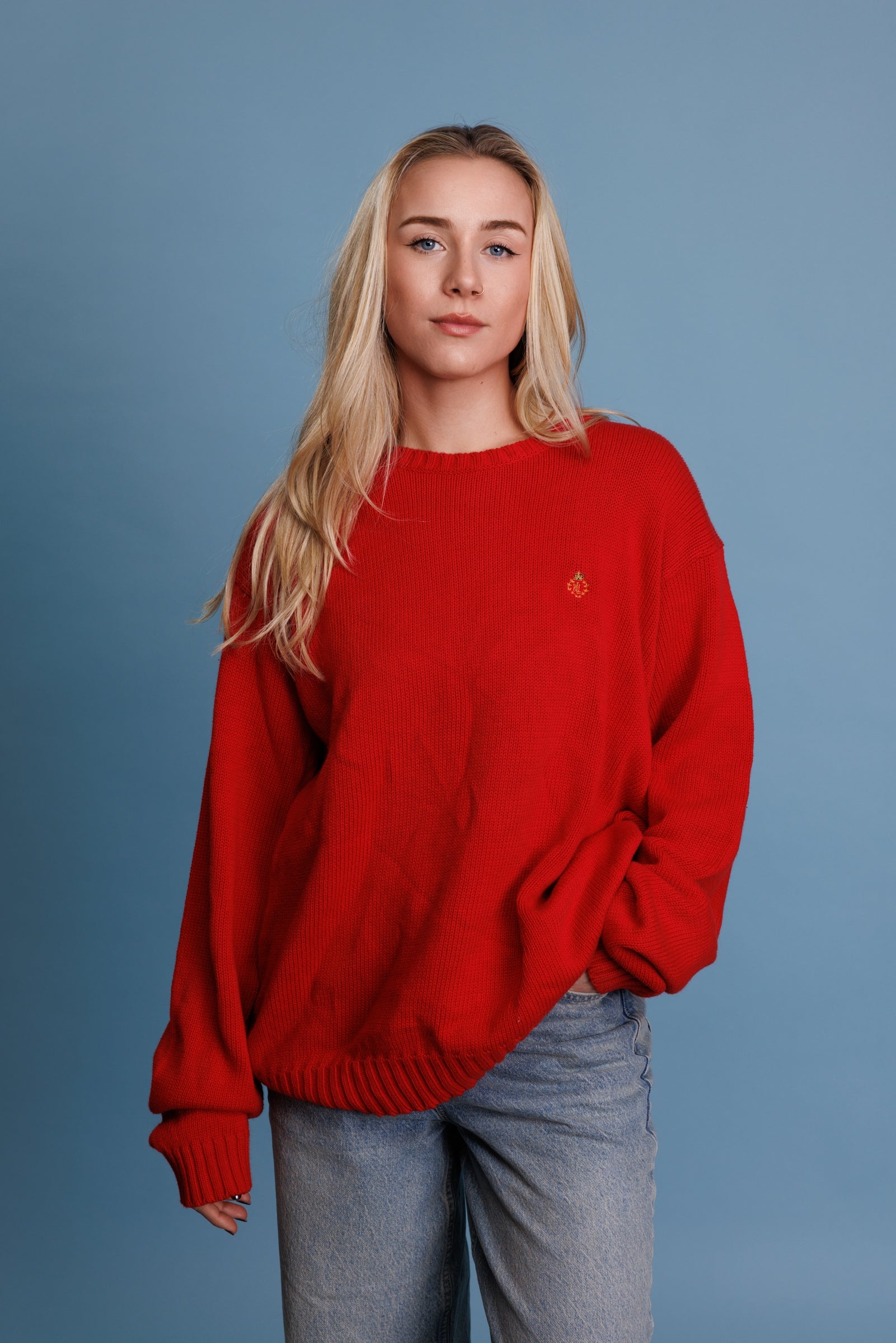 90's Super Red Cotton Tommy Hilfiger Knit Jumper L/XL